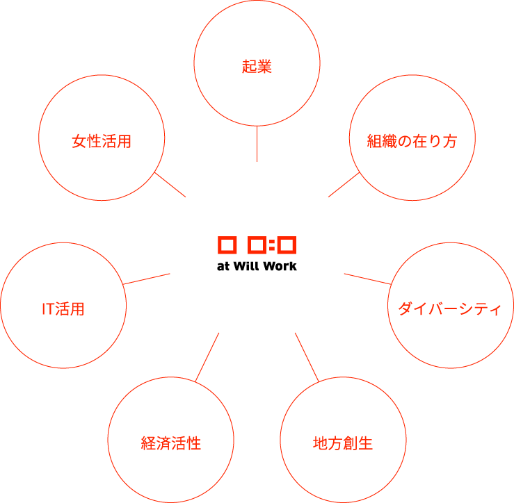 私たちat Will Workは、多くの企業・人・団体による事例共有のプラットフォームとして、ノウハウの蓄積・体系化、そして迅速に共有していくことで「働きやすい社会づくり」に貢献していきます。